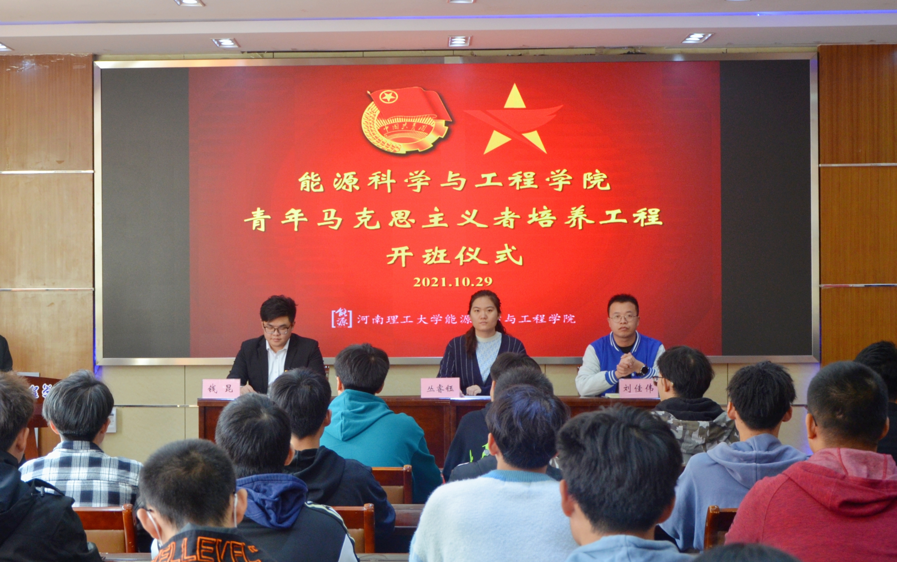 团委副书记丛睿钰,优秀研究生代表刘佳伟及第一期、第二期“青马工程”培训班全体学员参加仪式。仪式由院团委工作组负责人钱昆主持。