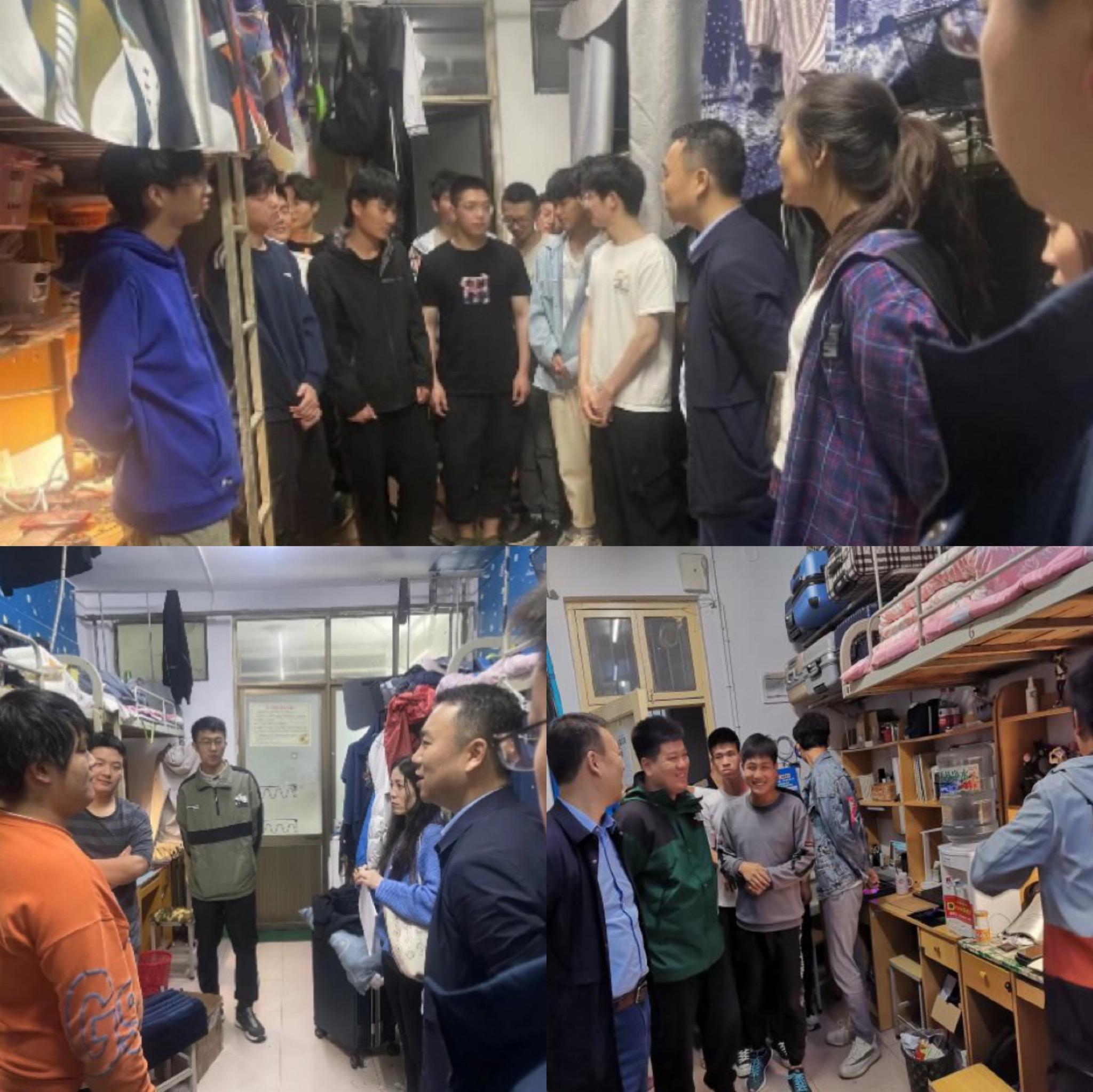 为检查督导学生宿舍安全和卫生管理,关心关爱学生日常学习生活,4月22日晚,院党委副书记阎俊豪和全体辅导员到色中色 学生宿舍进行走访慰问。