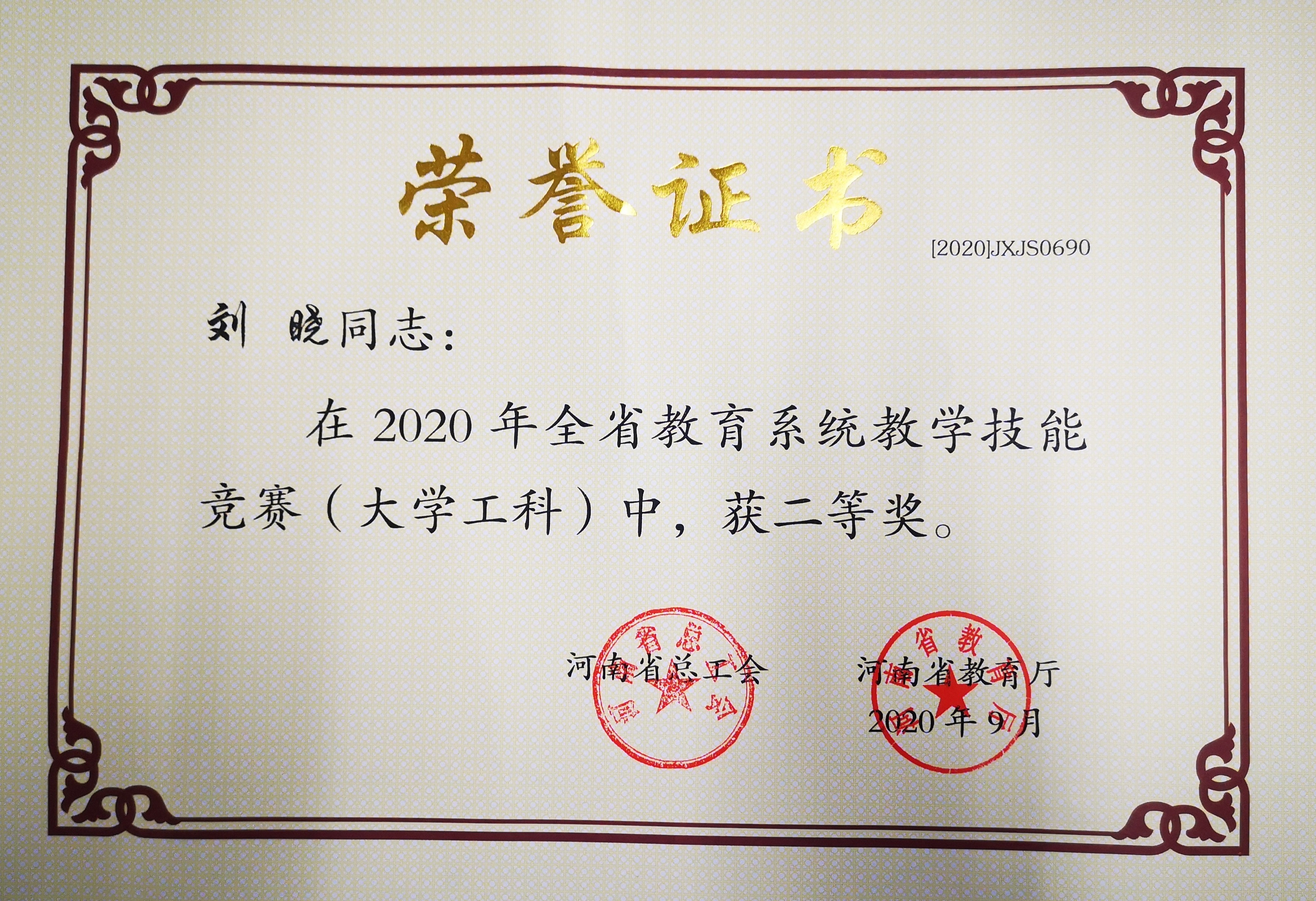 近日,河南省总工会、河南省教育厅公布了《关于表彰2020年全省教学技能竞赛获奖单位和个人的决定》,色中色 刘晓副教授在大学工科组中,获得二等奖,这是色中色 教师首次在河南省教育系统教学技能竞赛中获奖。