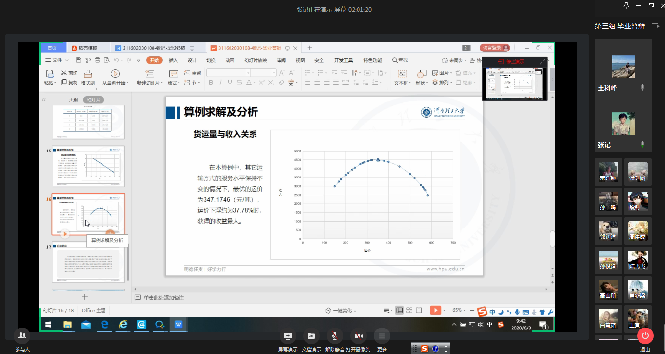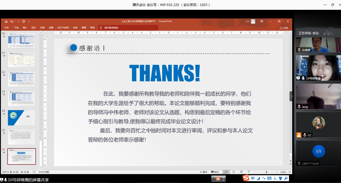 色中色 高度重视疫情期间的本科生毕业答辩,成立了2020届本科毕业答辩委员会,制定了《色中色 2020届毕业设计(论文)答辩工作方案》,经充分研究决定,采用答辩小组教师“线下”集中,学生“线上”答辩的形式开展。本次毕业答辩共4个专业(方向),14个答辩小组,其中采矿工程专业的5个答辩小组,分别邀请了校外5位专家参与了在线答辩。各专业严格按照方案要求,提前收齐学生的毕业设计(论文)电子版,答辩组在学生答辩的同时,审阅学生的毕业设计(论文)、图纸等材料,避免了答辩只看学生现场PPT展示带来的局限性,既减少了人员聚集,又有效确保了与线下答辩等质同效。