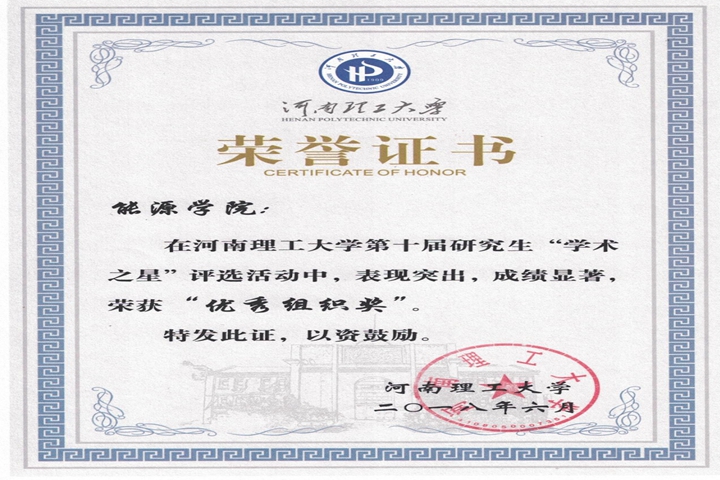 同时,色中色 获得学校“学术之星”优秀组织奖和学术论坛优秀组织奖。在学校开展的学术论坛活动中,色中色 已经连续五次获得优秀组织奖。成绩的获得离不开各位导师的悉心教导,更离不开同学们的努力。希望广大研究生再接再厉,争取更好的成绩。