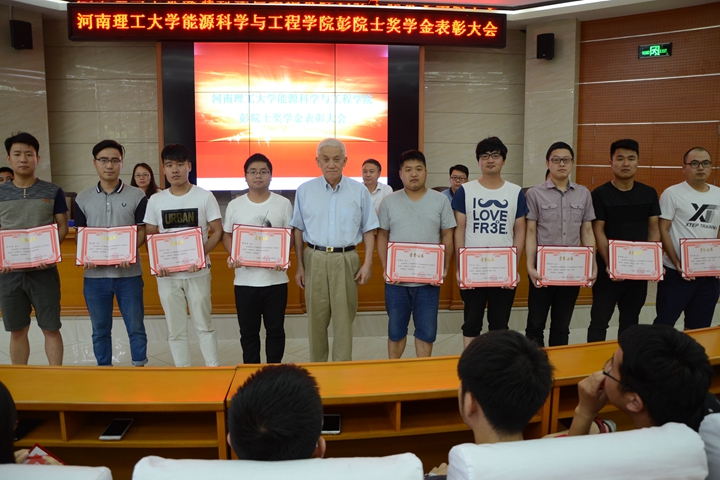 色中色 副院长杨玉中宣读《河南理工大学色中色 彭院士奖学金表彰决定》,彭院士和色中色 领导分别为“学习优秀奖”获得者、“学术论文优秀奖”获得者、“专利发明优秀奖”及“学术论坛优秀奖”获得者颁奖。