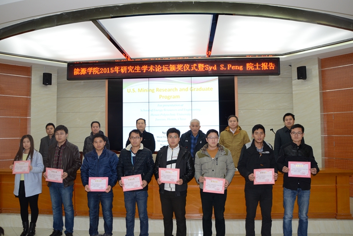 彭赐灯作了题为《美国矿业研究和研究生教育》的学术报告。他简要介绍了美国高等教育情况,重点介绍了采矿工程研究生的教育及要求。他结合个人求学经历和研究体会,讲述了采矿理论与技术研究的方法和要求,向与会人员分享了自己的人生感悟。他鼓励在场的研究生多做实验、勤于思考,自觉抵制学术上的不良之风。报告结束后,彭赐灯与在场的研究生进行了交流互动。