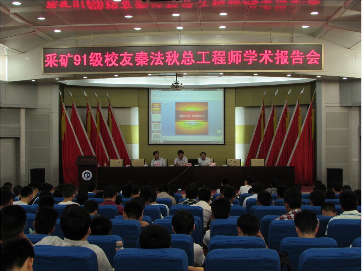 举办91级采矿校友学术报告会。优秀校友代表郑煤集团嵩阳公司总工程师秦法秋、冀中能源峰峰集团大社矿总工程师王建民、自主创业成功人士李善荣在学校圆形报告厅分别作学术报告,共同探讨煤炭类学生成长与成才的问题。色中色