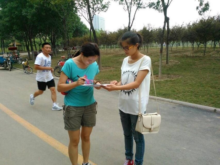 在调查的过程中,一队志愿者意外地遇到原焦作市副市长郭国明。他表示,“环保是城市所必不可少的,经济的发展不能以牺牲环境为代价,同学们举办的环保宣传活动具有十分积极的意义,希望大家能再接再厉,为建设美丽焦作贡献出自己的一份力量。”在对周边散步公园群众的调查中,队员们还了解到,市民们对污水处理了解并不多,平时都是通过媒体或者网络了解了一些污水处理的相关知识,并不全面。另一队志愿者问卷调查了一名环卫工人,“近年来,政府不断加大环保宣传力度,大力整治工厂排污问题,城市的环境已逐渐好转,但生活污水随意排出的问题还是存在,希望能通过环保宣传活动,让更多的人意识到环保的重要性”,这位环卫工人认认真真地与实践队员们交谈着。