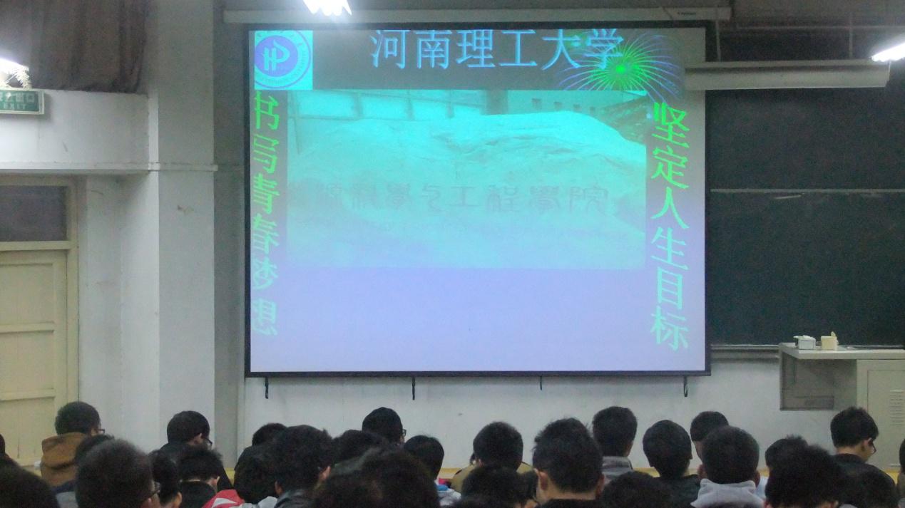 盛世潮头展才俊,再谱华章;钟灵毓秀显英杰,永续辉煌。诗歌朗诵《我的梦》气壮山河,激荡人心,拉开了此次活动的帷幕,展现了全院师生在党的十八大精神的指引下朝着“中国梦”前进的坚定信念。追忆高三拼搏岁月,不悔当年挥洒汗水。PPT《回忆高三》用朴实的画面深深打动了学生,引起了在座学生的共鸣;《在那桃花盛开的地方》尽显了采矿学子带给观众的美好憧憬,缱绻着祝福的情思在舞台上久久回荡;《存在》一曲更是唱出了人生的真谛,唱出了大一新生满腔的斗志,唱出了他们青春的朝气。在随后的互动环节中,学生们围绕“中国梦,我的梦”这一话题踊跃发言,从个人、家庭、学校、社会、国家五个方面谈论了自己的梦想,深刻地展现了“书写青春梦想,坚定人生目标”这一主题。随着现场不断升温,13级班主任代表对本次活动进行了总结,并期望学生们努力学习,早日实现人生梦想。最后,活动在一曲《朋友》中落下帷幕。