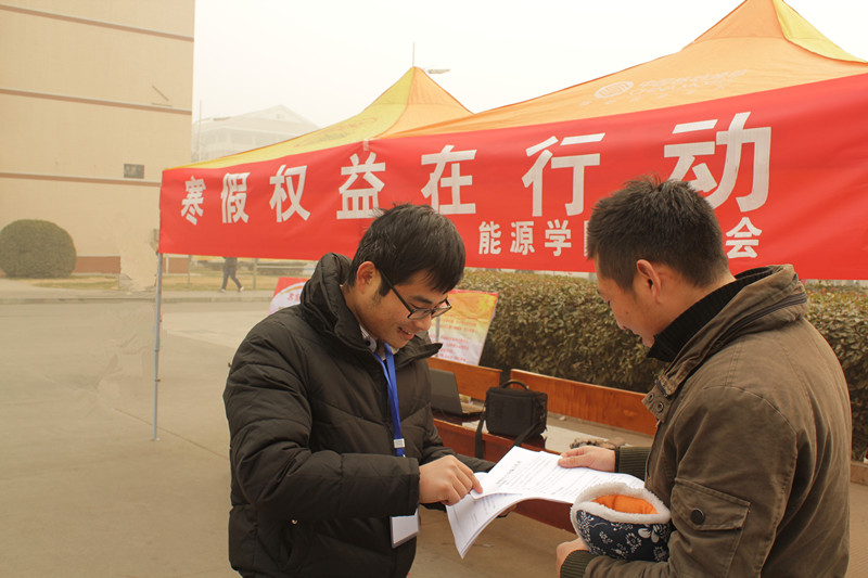 也在宣传场地设立安全讲座和法律咨询服务站,由以前寒假打过工的学生向大家讲述自己的打工经历,并就大家提出的关于劳动法、合同法等相关法律进行详细的解答,同时指导同学们如何采取正当途径维护自己的合法权益,对同学们进行基础法律知识的普及。第二步,开展法律知识问答,进一步强化同学们法律意识,号召广大学生参加“寒假权益在行动”签名活动,鼓励大家参加维权活动,同时带动身边的人,形成“学法律,树新风”的良好氛围。