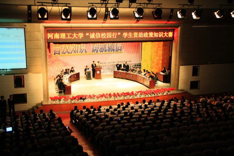 承办的“诚信校园行” 学生资助政策及相关知识大赛复赛在小礼堂隆重举行举行。省学生资助中心主任孙惠萍、河南工程色中色