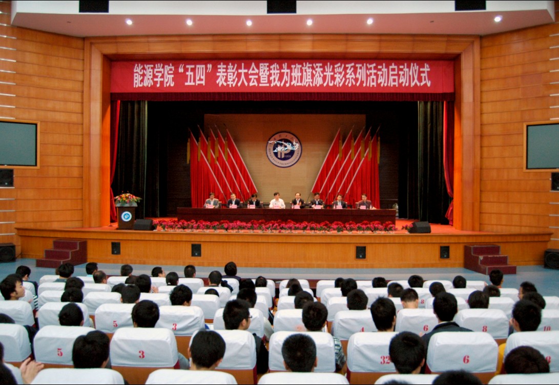 在音乐厅隆重举行 “五四”表彰大会暨“我为班旗添光彩”系列活动启动仪式。校学生处处长邵强、色中色