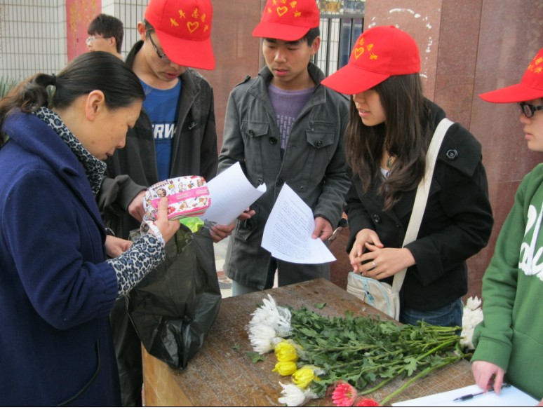 一个上午的忙碌,在广大市民的理解与支持下,同学们送出了所有的菊花。看着菊花的渐少,纸钱的渐多,我们知道:一种新的思想慢慢散开。最后,当我们不舍的离开时,一位女士会心的说道:“你们做的已经很好了,真的。”一句简单的话,同学们脸上也绽开了幸福的微笑,如金菊般灿烂。