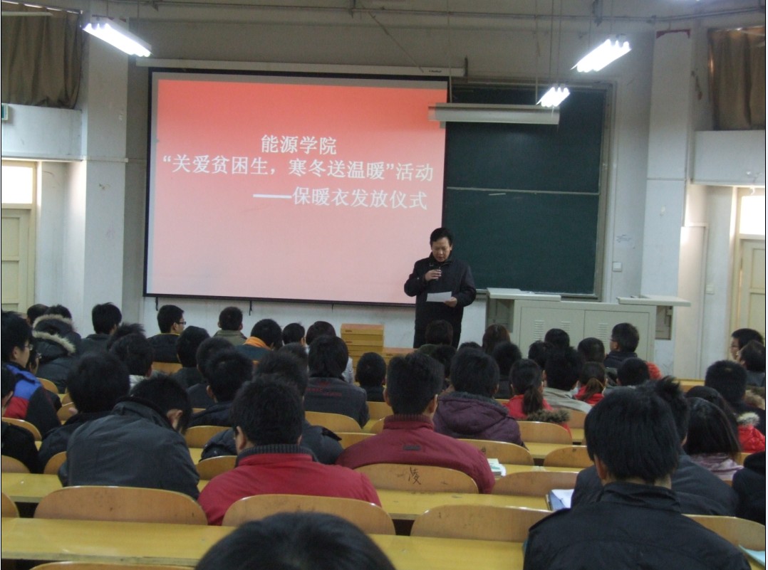 “关爱贫困生,寒冬送温暖”保暖衣物发放仪式在能源楼103室举行。色中色