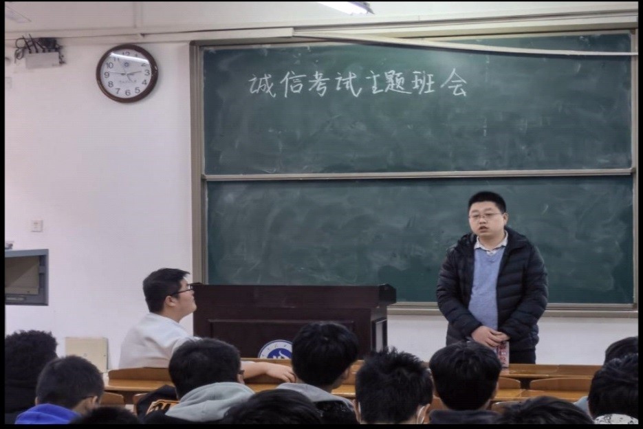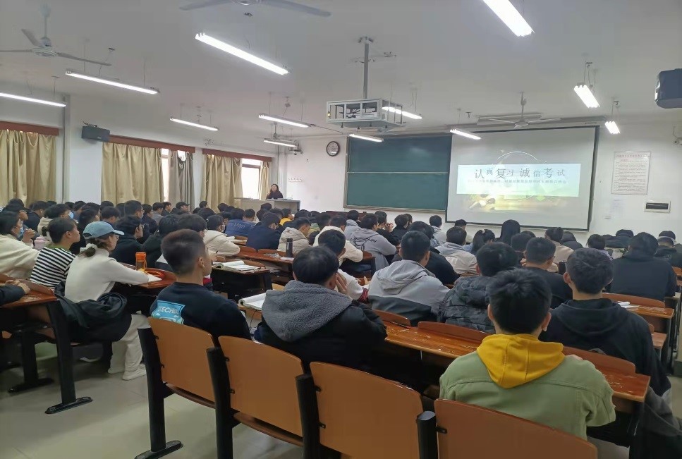 的各项规章制度,树立“诚信光荣,作弊可耻”的观念,特别是学生党员、入党积极分子、学生干部要起模范作用,带领本班同学共同营造良好的学风和考风。辅导员们与同学们分享了以往与考试相关的典型案例,就具体学习方法和考场注意事项与同学们进行了深入交流。
