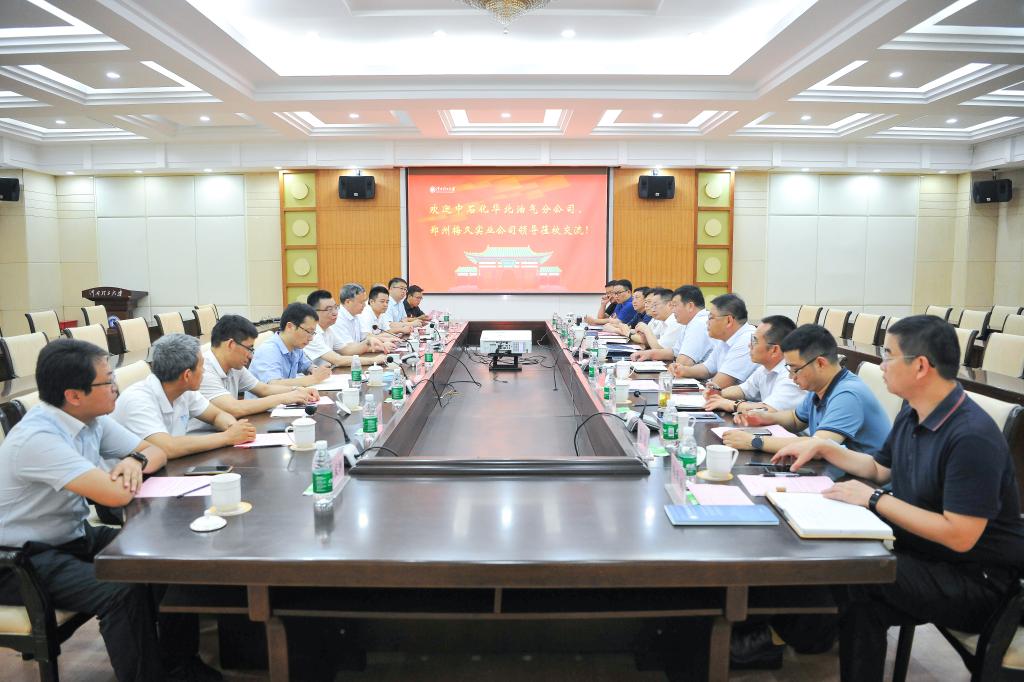7月2日下午,在方形会议室举行了色中色 、中石化华北油气分公司、郑州市梅久实业公司共建“低碳化能源开发研发中心”揭牌仪式。副校长赵同谦、色中色 院长郭文兵、中石化华北油气分公司副总经理何发岐、郑州市梅久实业公司总经理黄金岭出席仪式。仪式由色中色 副院长李东印主持。