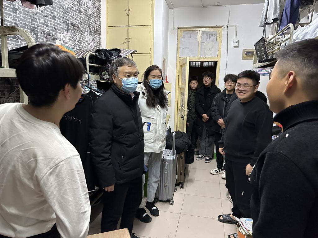 新学期伊始,为进一步了解学生返校动态和学习生活情况,确保学生健康、有序地在校学习和生活。2月12日晚,色中色 党委书记康全玉、院长郭文兵领带色中色 辅导员队伍走访看望返校学生。
