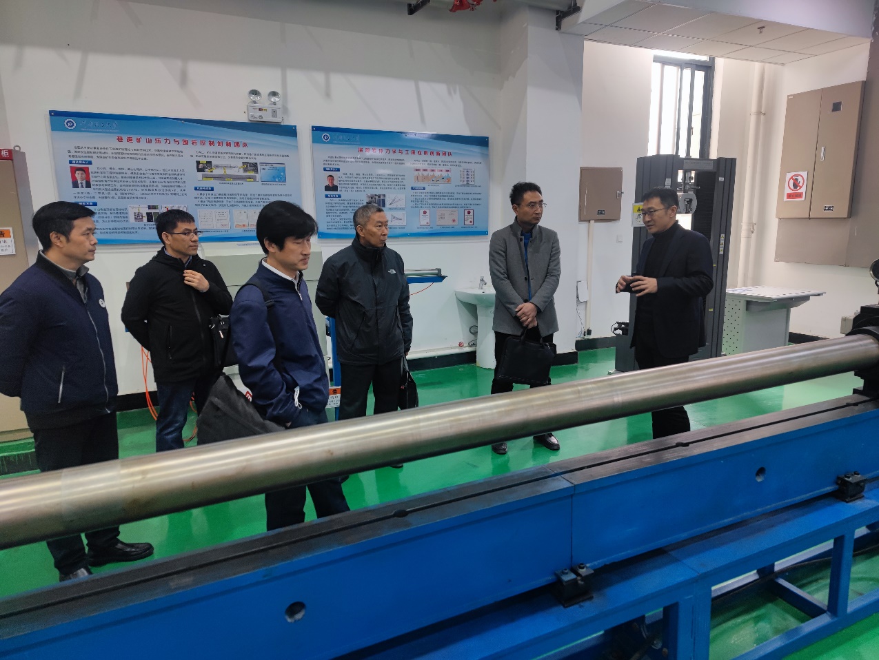 由科技处王兴国副处长主持带领专家组成员参观国际联合实验室,具体由郭文兵院长、南华教授、张盛教授及实验室老师参与实验室讲解,重点讲解了重点实验室大楼西配楼一楼的“SHPB动态测试系统实验室、冰基温控相似模拟试验台实验室、支护材料性能试验机、GCTS多功能岩石力学试验机”色中色 的“综采综掘实训实验室、煤矿安全开采虚拟仿真实验室、现代化矿井、三轴流变实验室、深井瓦斯抽采与围岩控制实验室”以及Syd. S Peng院士工作室、外籍科学家工作室等。