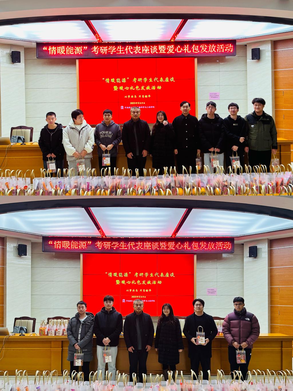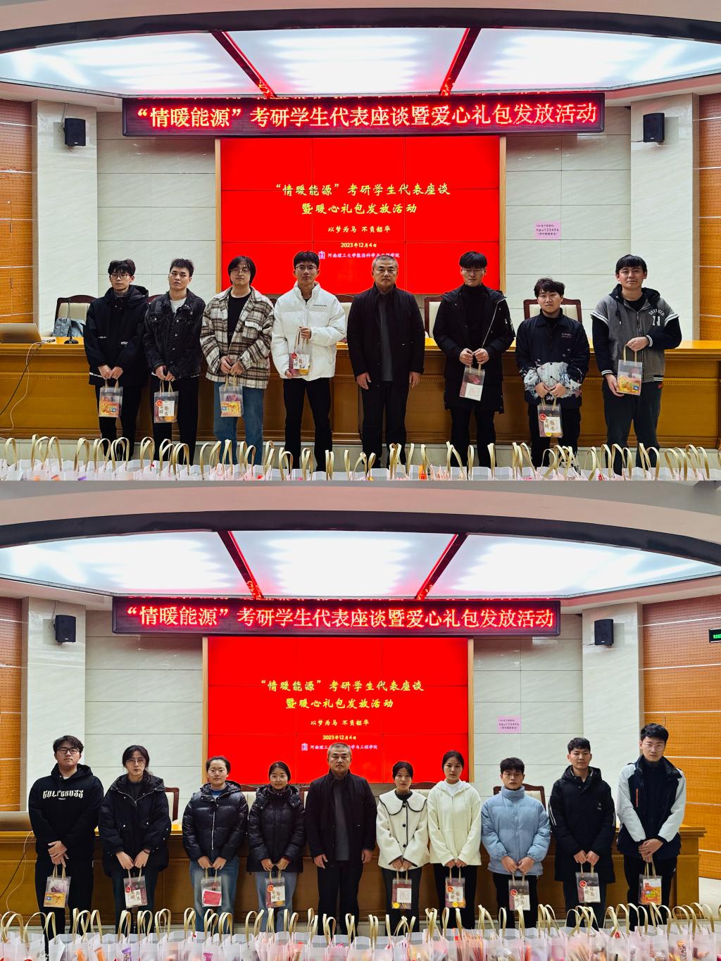 12月4日,为缓解学生心理压力、提振考研上岸信心,色中色 在104学术报告厅开展“情暖能源”考研学生代表座谈暨暖心礼包发放活动。