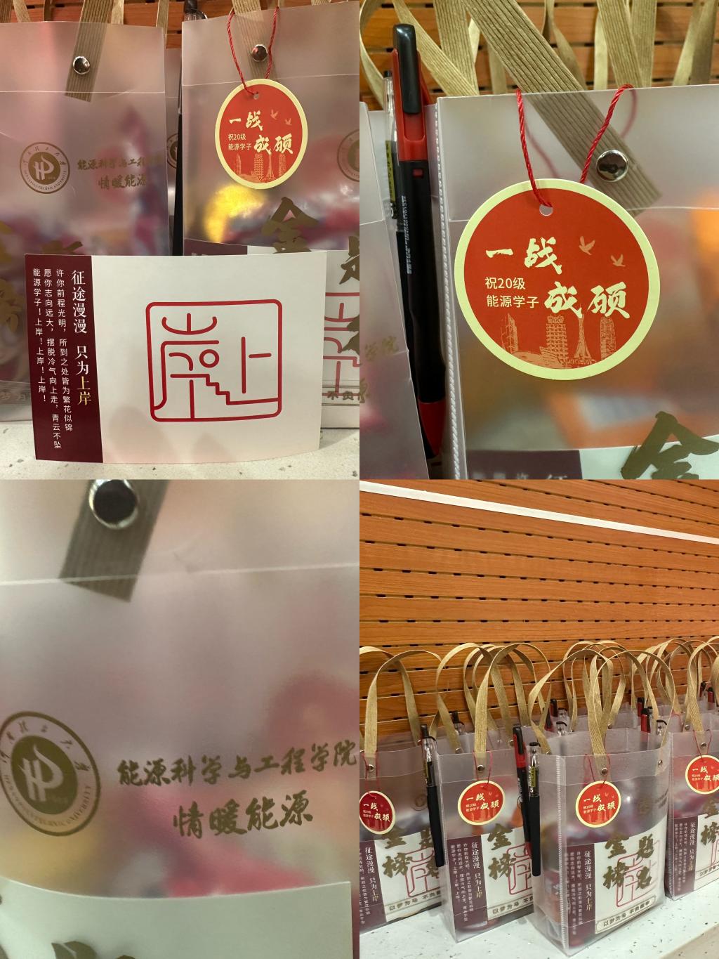 同时,色中色 为每位考研学生准备了温馨祝福卡片和礼物,色中色 党委副书记邵水军在“上岸”贺卡上亲笔写下祝福语,祝愿所有考研学子们能够成就梦想!为了表达这份祝福,色中色 还特别设计了寓意丰富的“金榜题名”礼袋,祝愿能源学子“以梦为马,不负韶华”。礼袋里共有6件礼品,寓意“66大顺”:发热暖贴,在寒冷的冬季为同学们送去温暖,寒冬考场不再寒冷,愿能源学子以最好的状态迎接考,一战成硕;旺仔牛奶,寄托着色中色 对同学们福运旺旺的祝愿,放平心态,稳扎稳打;金币巧克力,希望学子们在考场上“巧思成文、巧克难题”,发挥出最好的状态;象征“我最棒”的棒棒糖,寓意苦尽甘来,最终“‘棒’上有名,金‘棒’题名”;一筐筐橙子带着色中色 诚意满满的祝福,祝愿能源学子都能心想事“橙”,一举“橙”名;助力“旗开得胜”的考神笔袋,祝愿能源学子“妙笔生花”,希望同学们能够用这支笔书写出更精彩的人生故事。“暖情”大礼包,每一件礼物都蕴含着美好的寓意。同时,色中色 辅导员办公室为考研学子准备有考场用的笔记本、水笔等文具用品。