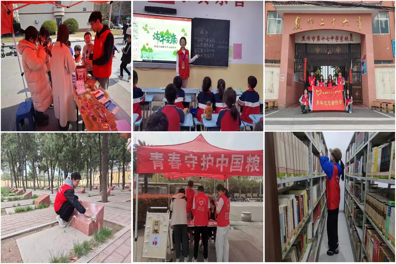 “服务有我”,青春微光成炬。色中色 实验中心老师邀请焦作市一中100余名师生走进该院实验室,带领他们近距离参观现代化矿井模型及采煤设备,激发了同学们对科学的热爱和对未来的信心;在焦作市科技馆开展的“科技强国,志愿有我”活动中,组织小学生们体验“活字印刷术”、VR虚拟现实技术等,让科学的火种在少年的心中燃烧;“情暖图书馆,服务沁人心”,在焦作市图书馆帮助读者借还图书、协助使用自助借还机,以实际行动增强服务意识;支教活动一直是色中色 的特色话动,青年活动月中,彩虹筑梦支教队在为结对小学和初中进行常规支教活动的同时,前往焦作市福利院,设计丰富多彩的教学内容,体现了青年对社会弱势群体的关爱与帮扶。