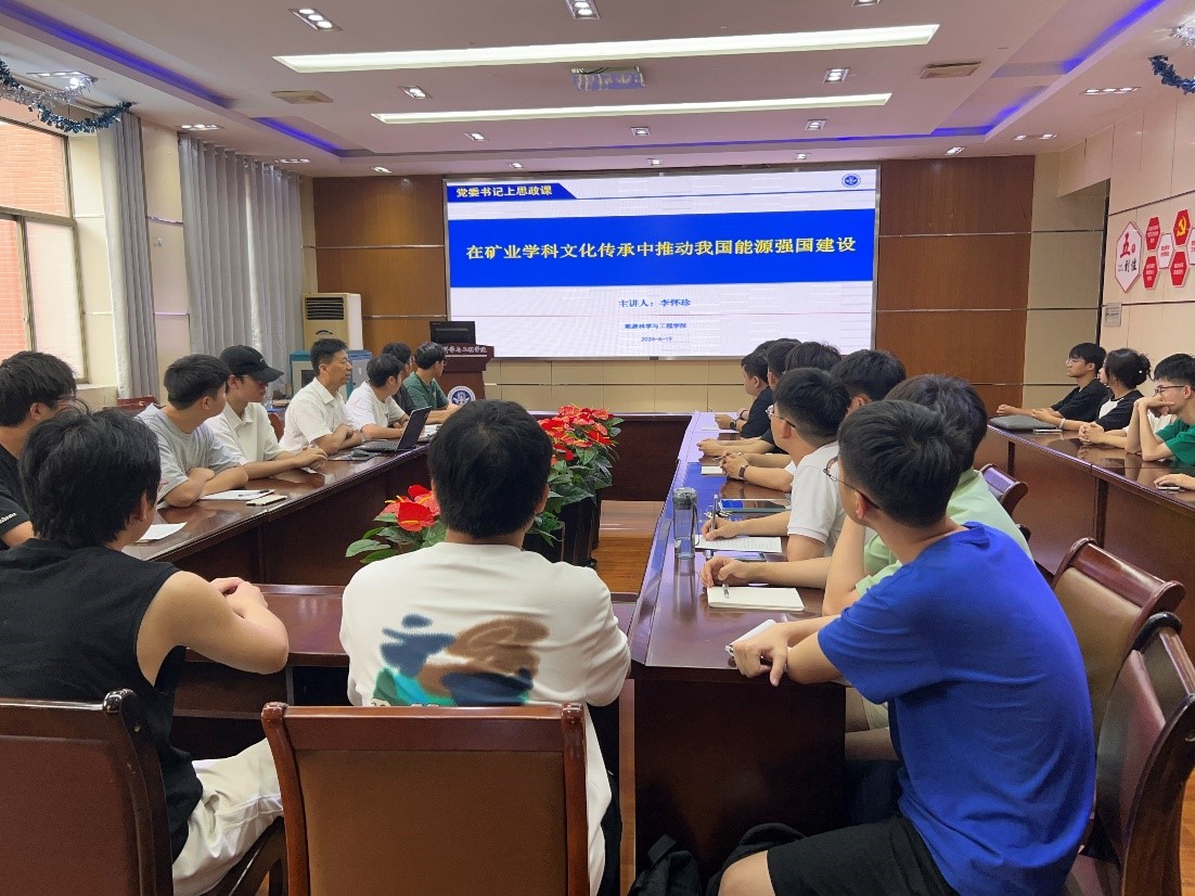 6月19日,院党委书记李怀珍在201会议室讲授题为《在矿业学科文化传承中推动我国能源强国建设》的思政课,2021级采矿工程(卓)学生代表近30人参与听课。课程结束后李怀珍又与同学们进行了座谈和交流。
