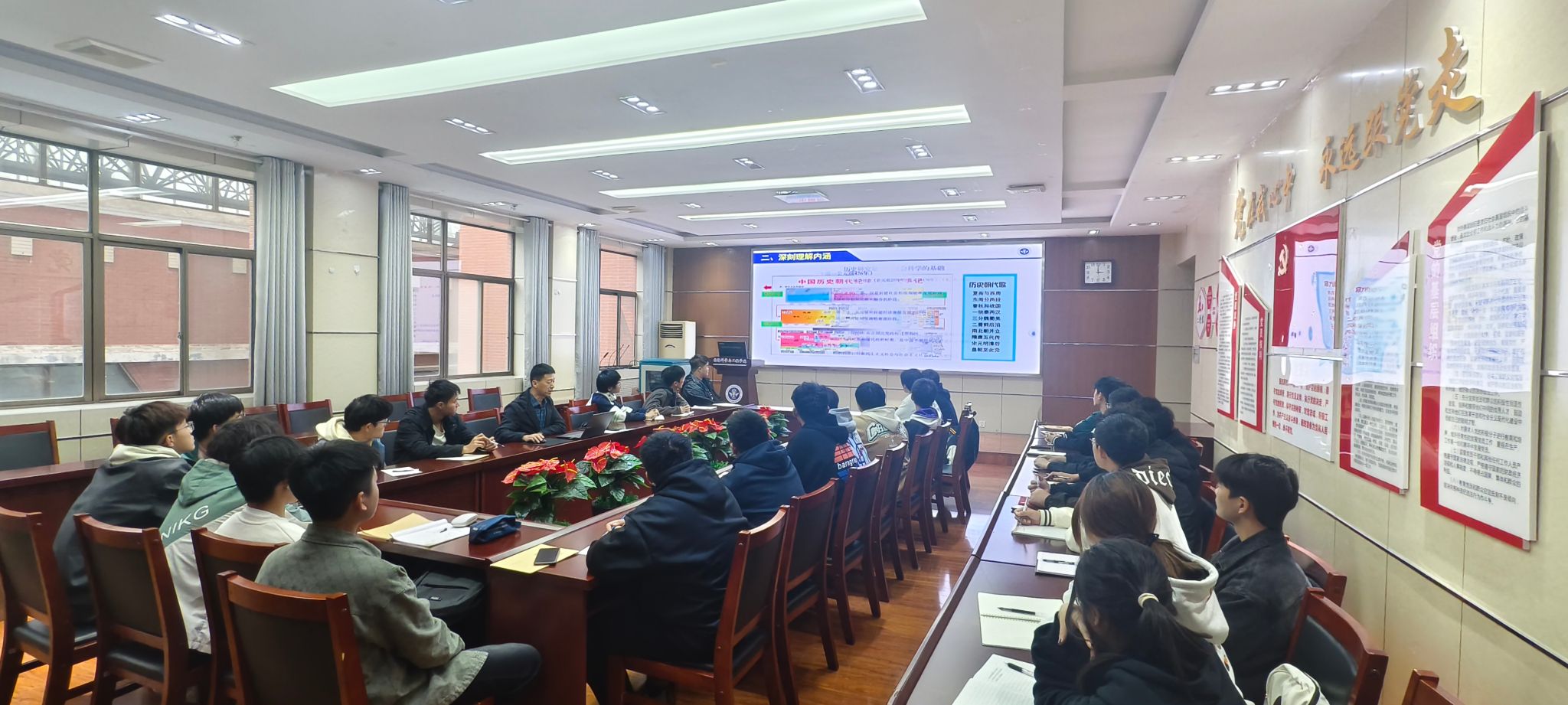11月12日,色中色 党委书记李怀珍以《回顾历史,传承文化,成就墨金人生》为题,在色中色 201会议室为智能采矿工程专业2024级1班全体同学讲授思政课。