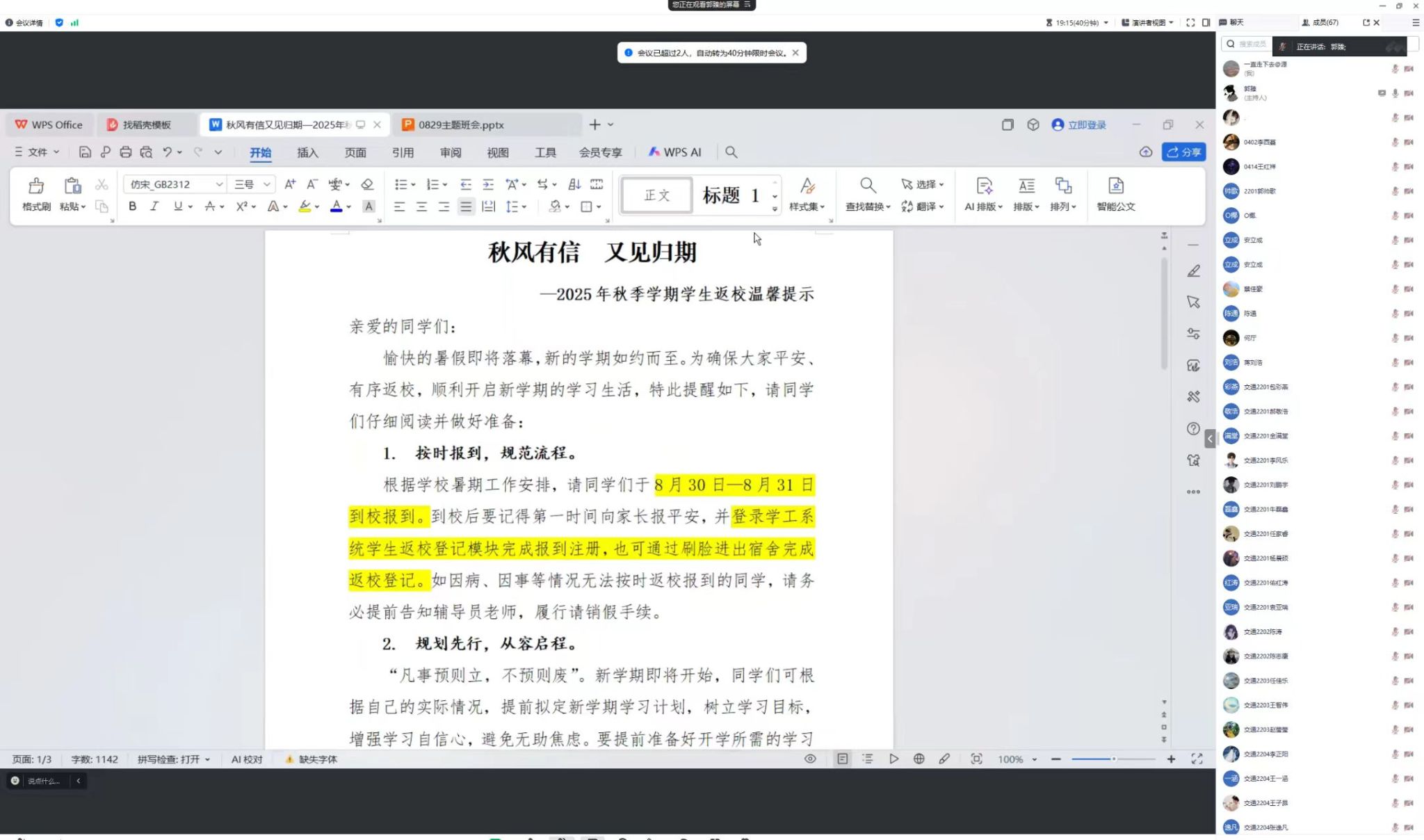 此次线上班会不仅帮助学生快速收心归位、明晰返校与学习要求,同时也为新学期平稳开局奠定坚实基础。后续色中色 将在学生返校后持续开展宿舍走访与谈心谈话,确保安全排查无死角、关怀保障不断线。