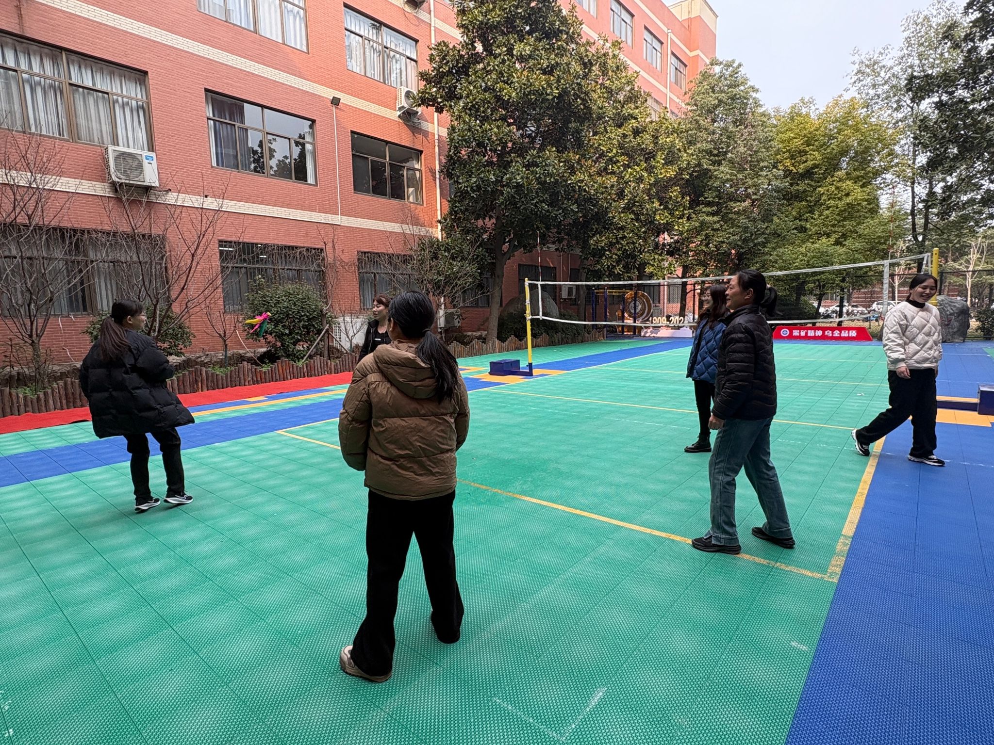 此次趣味运动会设置了踢毽子、跳绳、排球等多个项目。在踢毽子比赛中,五彩的毽子在女教师们的脚尖上下翻飞,仿佛灵动的精灵。有的老师技艺娴熟,连续踢上几十下都不在话下,动作轻盈流畅,赢得了阵阵喝彩;有的老师虽稍显生疏,但也全力以赴,脸上洋溢着专注与认真,每一次成功地踢起都能引发大家的欢呼。跳绳项目同样精彩,单人跳绳的老师身轻如燕,绳子在她们手中快速旋转,只留下一道道残影;集体跳绳时,老师们配合默契,随着绳子的节奏有序跳跃,展现出强大的团队协作能力。排球比赛则将现场气氛推向了高潮,发球、接球、传球、扣球,每一个动作都充满力量与技巧。