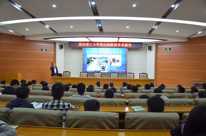 报告会上,胡启州以各个国家自行车的发展现状为切入点,依次对荷兰、丹麦、法国等7个国家的自行车发展历程、管理方式、运行优点等方面进行了概括分析,其中重点分析了欧洲自行车高速公路的规划理念和设计方法。通过对国外自行车及相关设施的设计分析,指出了我国自行车交通现状的不足之处,并提出我国可以借鉴国外自行车交通的设计理念,发展出一套符合本国的自行车交通设计方案。最后,胡启洲对在场同学提出的相关问题进行了耐心详细的解答。